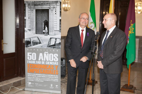Francisco de la Torre y Eugenio José Luque en la inauguración de la exposición "Málaga, 50 años de la Facultad de Económicas" en el Archivo Municipal. Archivo Municipal. Noviembre de 2015